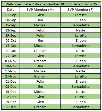 The SVP Conference of the Parish of the Good Shepherd provides a space to meet and chat in the Lower Room of St. Mary's Presbytery. The SVP space is available on Mondays from 10:00 until 14:00 and can accommodate 26 people at any one time. It is staffed by SVP members and parish volunteers. We provide hot soup (supplied to us at no cost by the Ugly Duckling restaurant at Long Lane), fruit, tea, coffee, biscuits, newspapers, games, puzzle books, clothing. As part of this venture, we owe a huge debt of gratitude to The Ugly Duckling restaurant who are providing the hot soup. In the Welcoming Space we also provide support for people needing help with form filling for DWP and other agencies, Food Bank referrals and other types of form completion. The current rota for the Welcoming Space can be found here. Thank you to Father Michael for making the space available for use and to those who have donated board games. Thanks also to those who have voluteered to help run it.